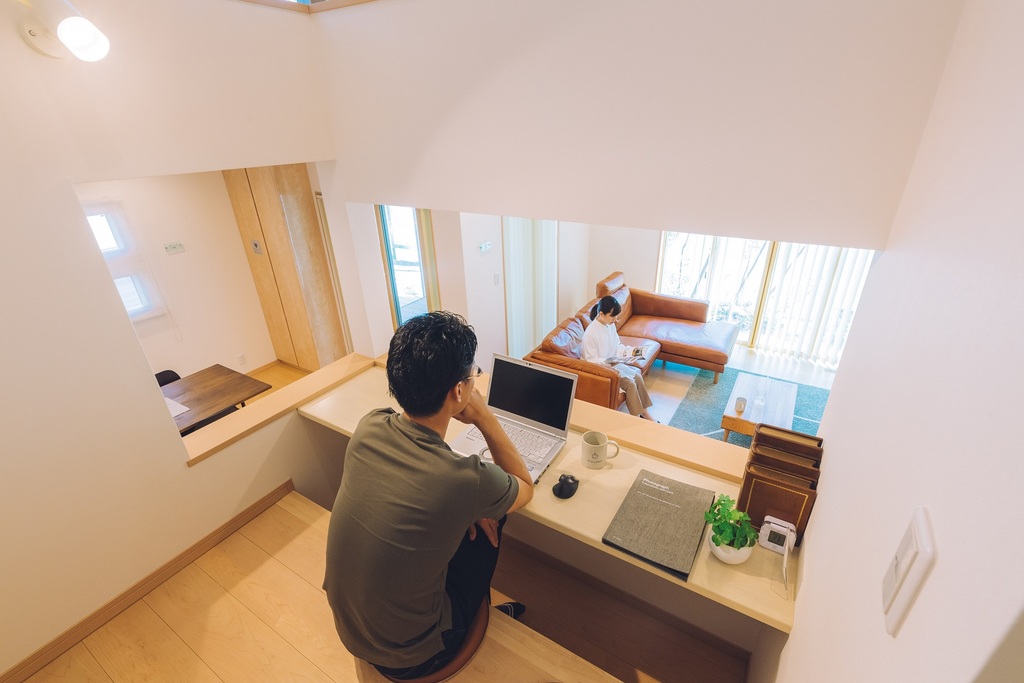 リビング・ダイニング・キッチンと2階をつなぐ接点でコミュニケーションの橋渡し場所。ここから会話が始まる家の中心、船で言えば艦橋(ブリッジ)です。